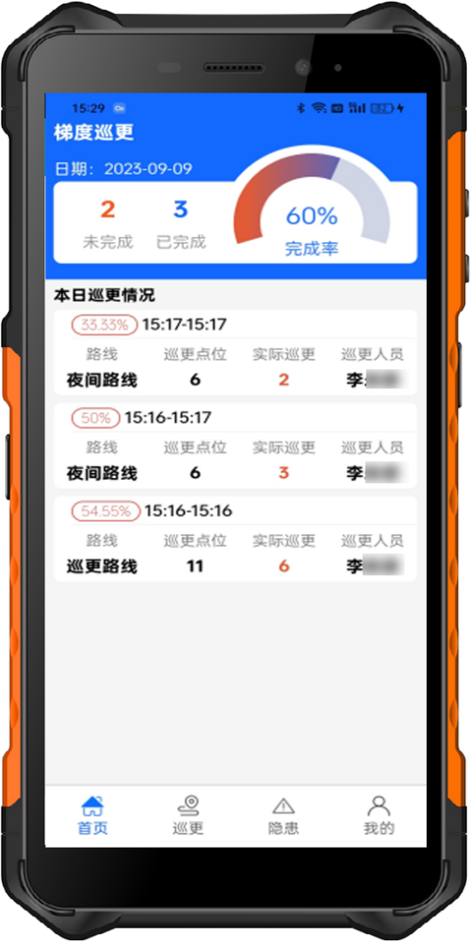 2、巡检频次巡检任务一键生成,漏查逾期智能提醒。