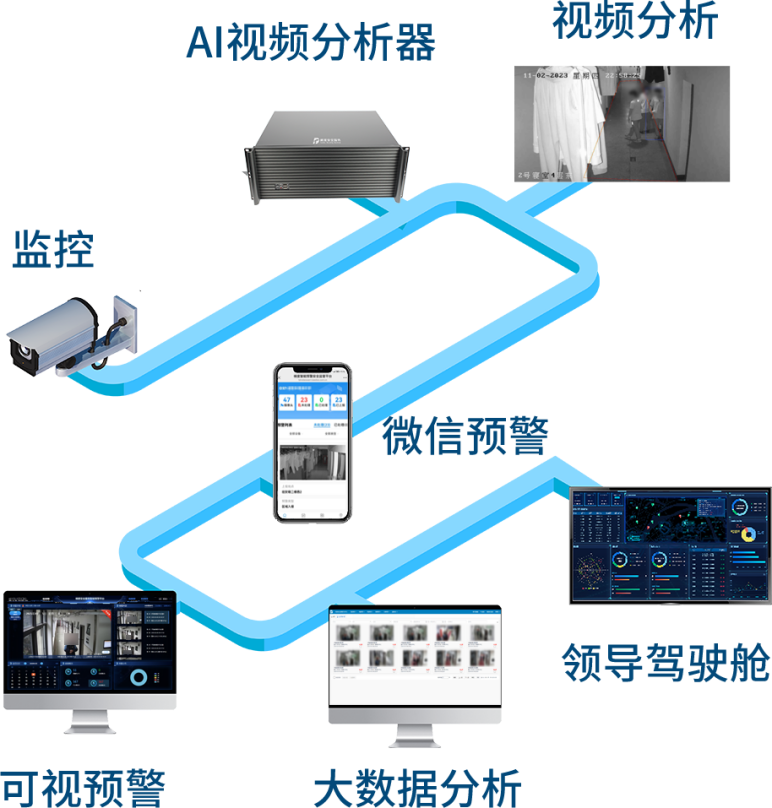 1、基于现有或新增的监控设备,通过AI视频分析,对人员异常行为预警。